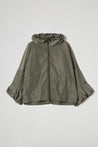 GIACCA CORTA IN TESSUTO TAFFETA’ EFFETTO NACRE’, COLLO E MANICA CON AMPIA ROUCHES,MANICA LUNGA, ZIP TONO SU TONO, TASCHE A TOPPA SUL FRONTE. LINEA BOXY ADATTA A TUTTE LE FISICITA’.