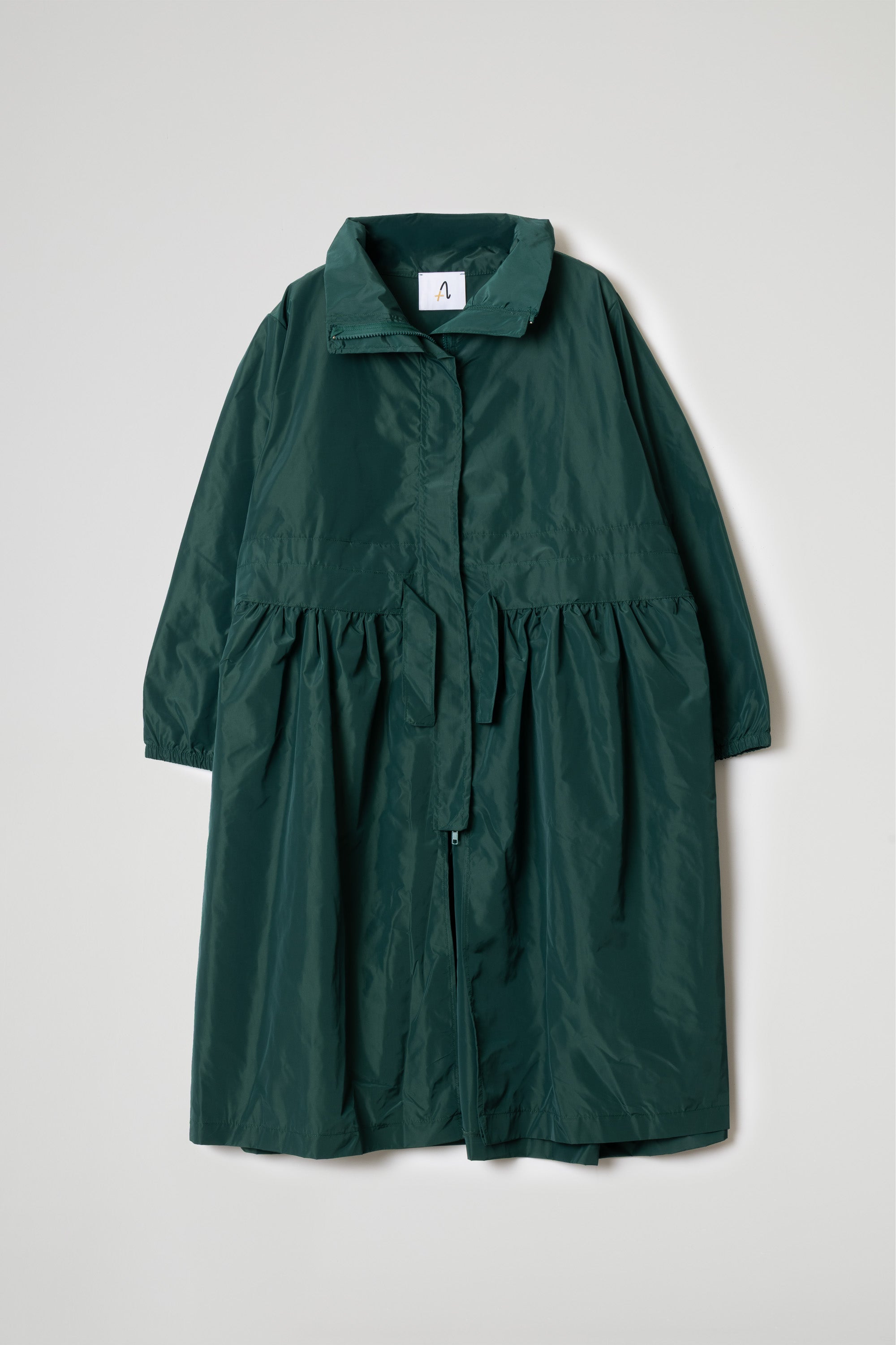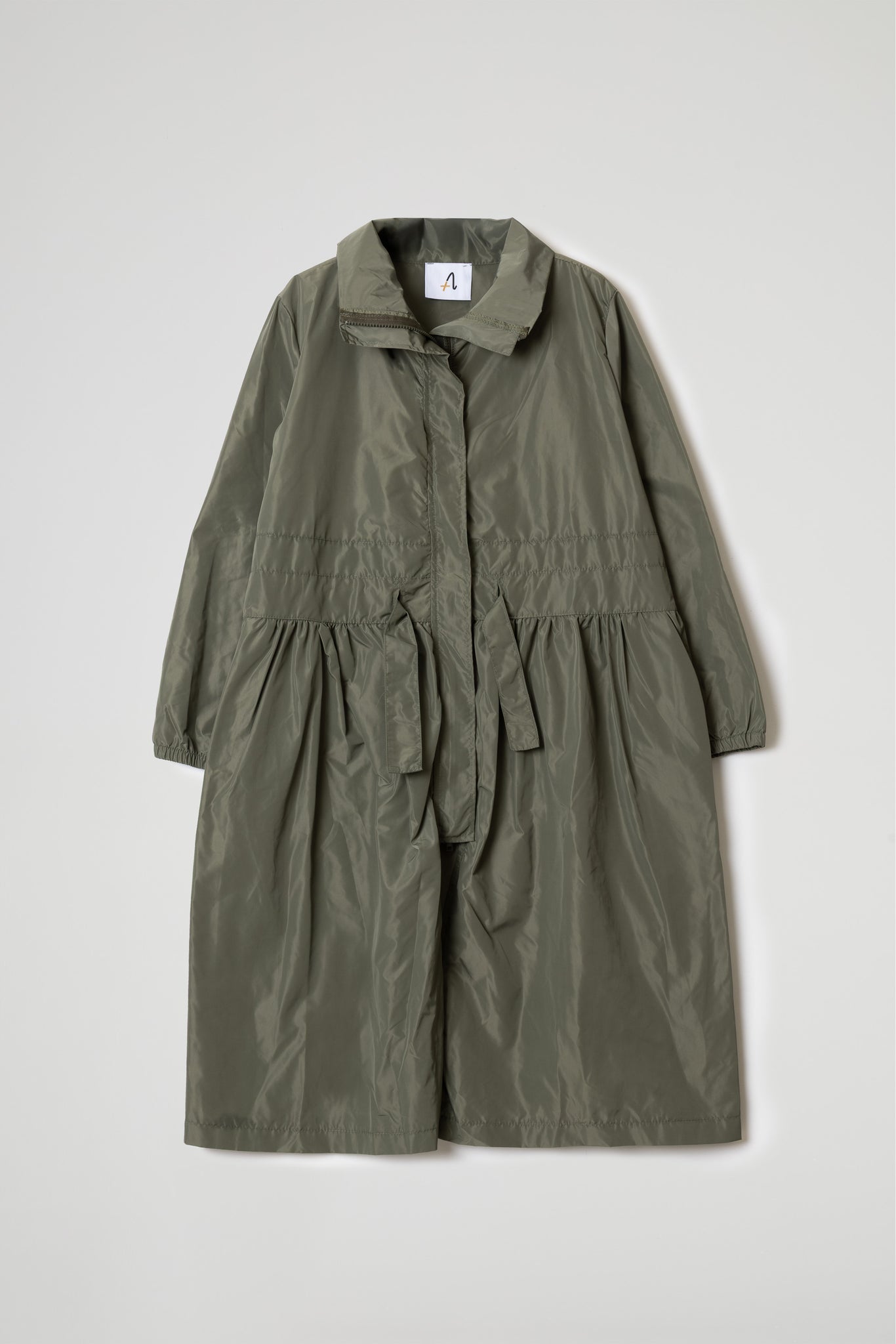 TRENCH LUNGO IN TESSUTO TAFFETA’ EFFETTO NACRE’, ZIP TONO SU TONO, MOSTRA SU ZIP, CINTURA REGOLABILE IN VITA, LEGGERO ARRICCIO SULLA VITA, TASCHE A FILO, MANICA LUNGA CON ELEASTICO SU POLSO. LINEA AMPIA E CONFORTEVOLE