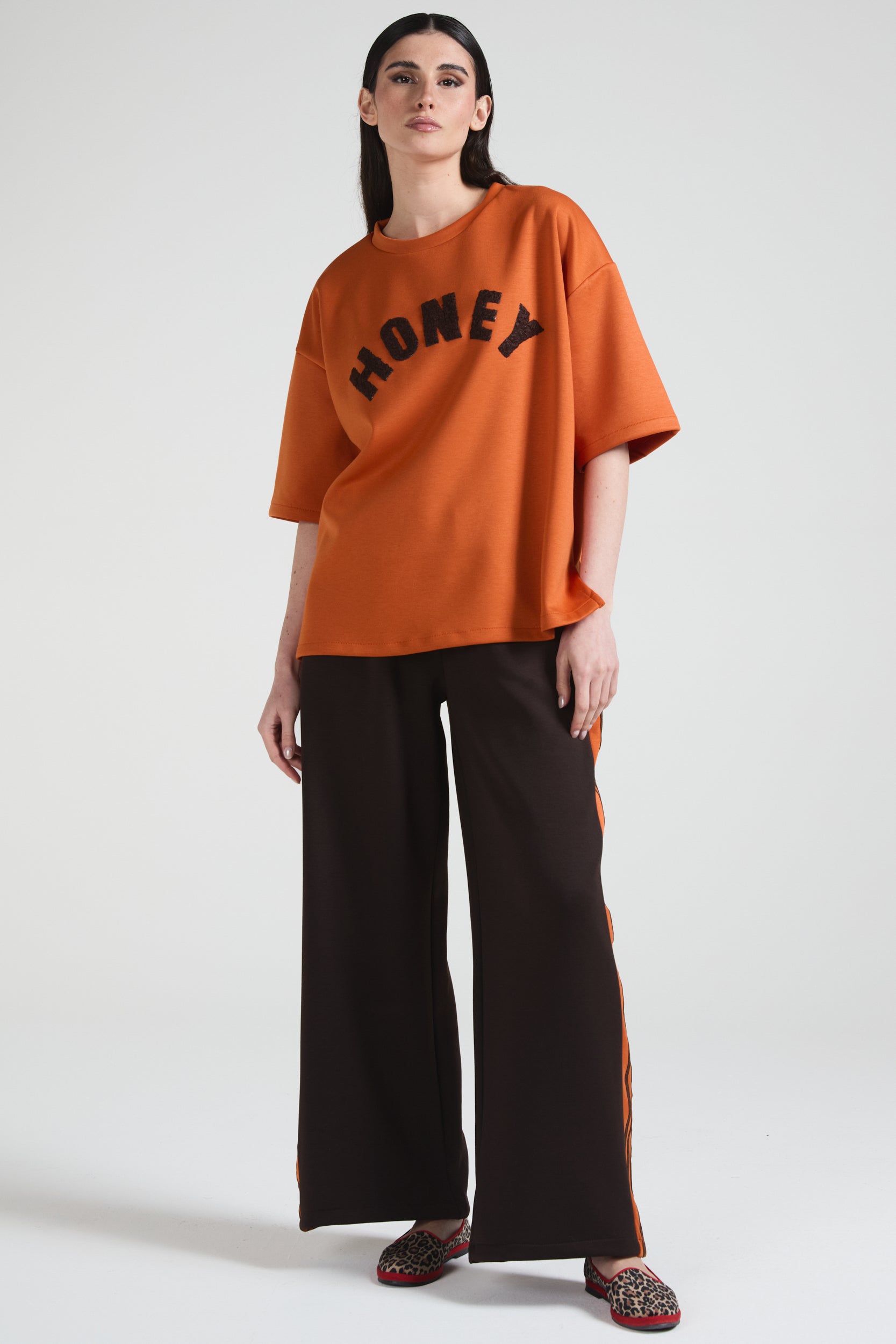 TOP MANICHE CORTE SCRITTA A CONTRASTO