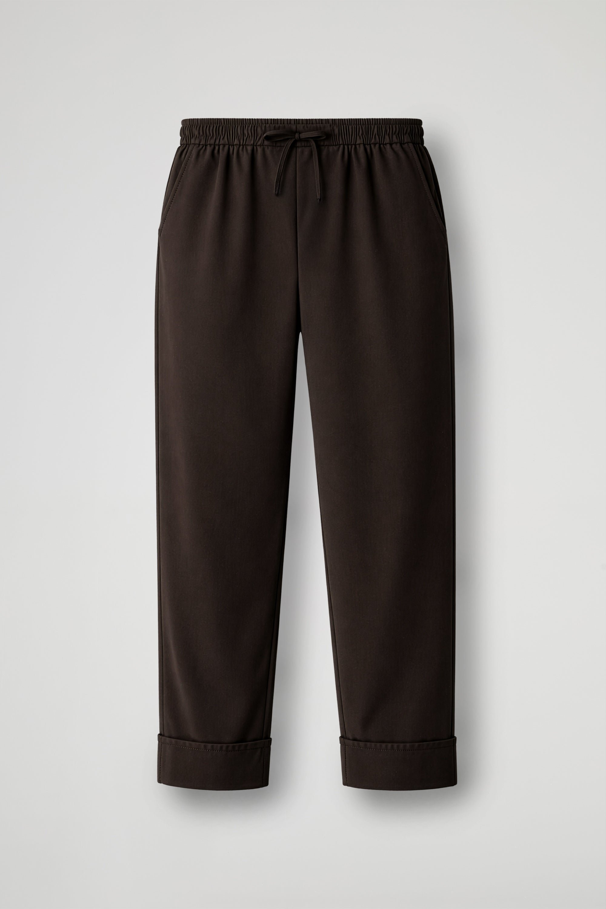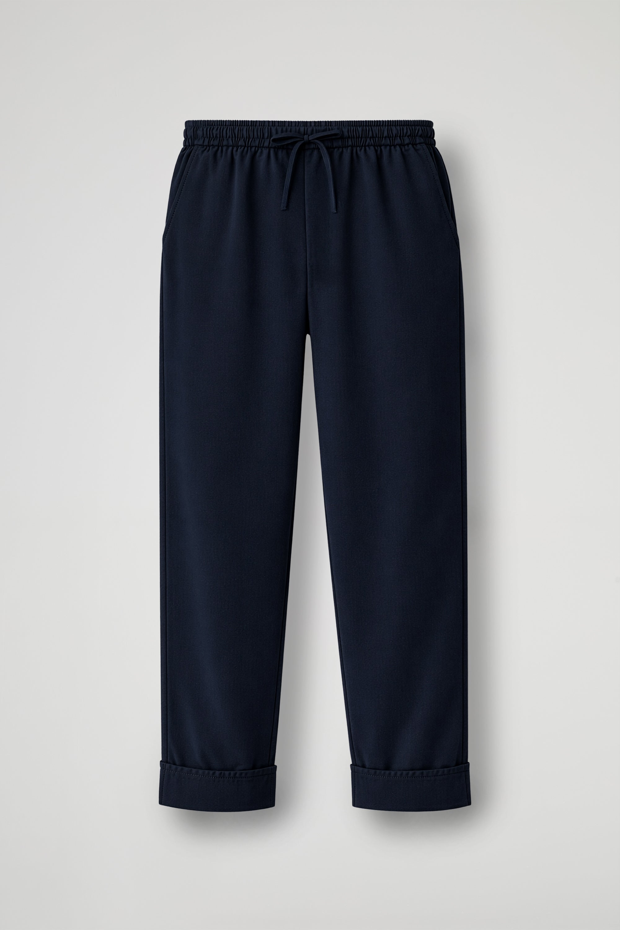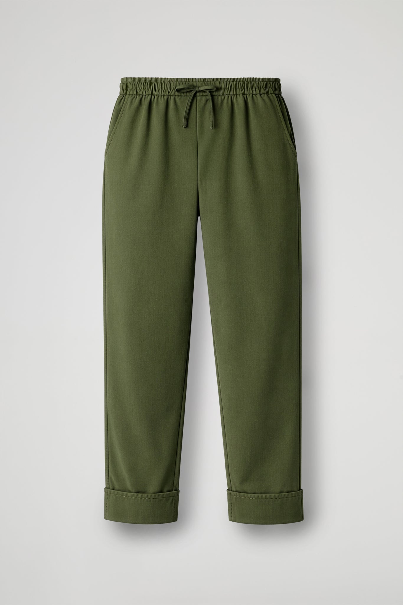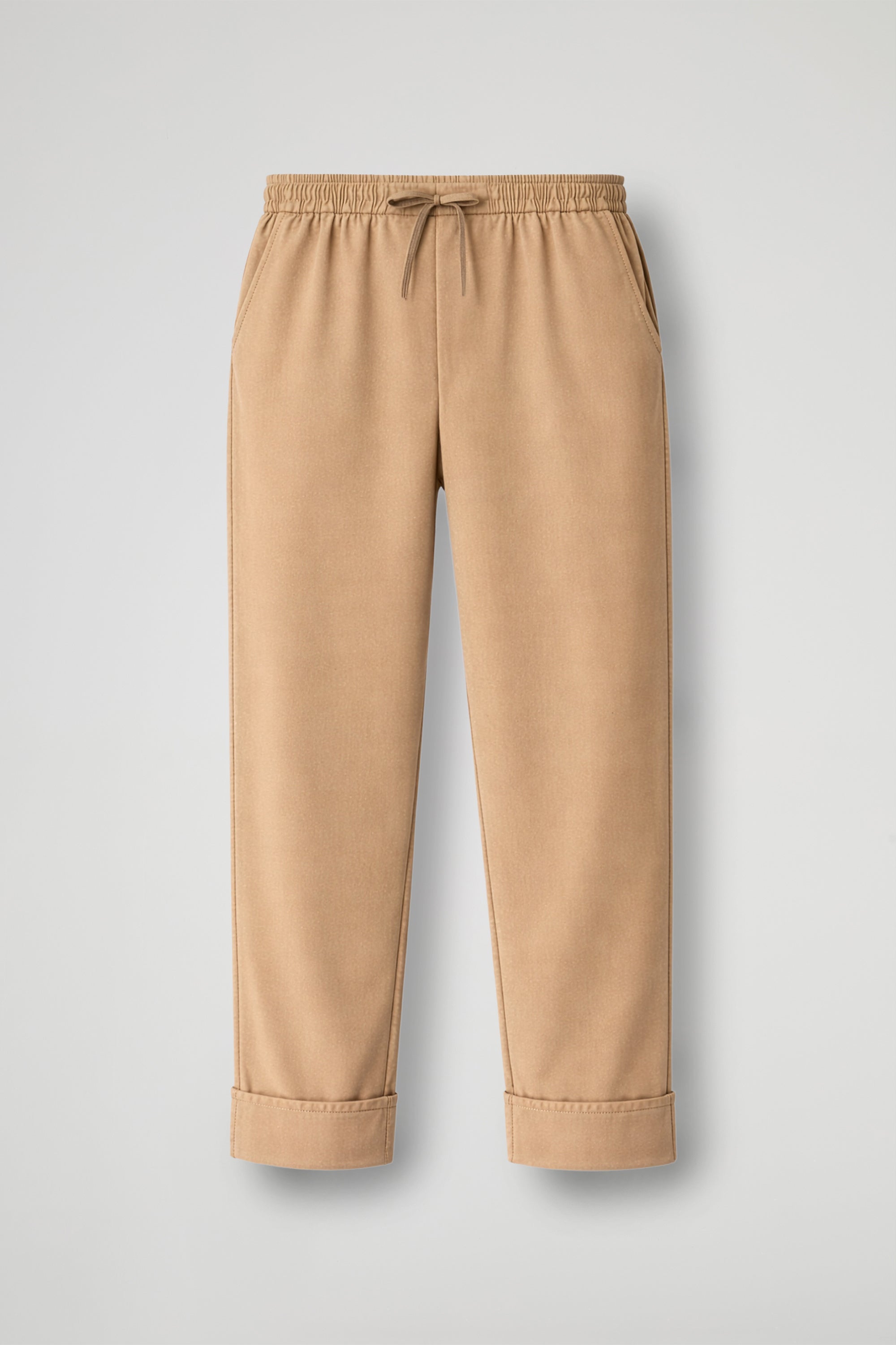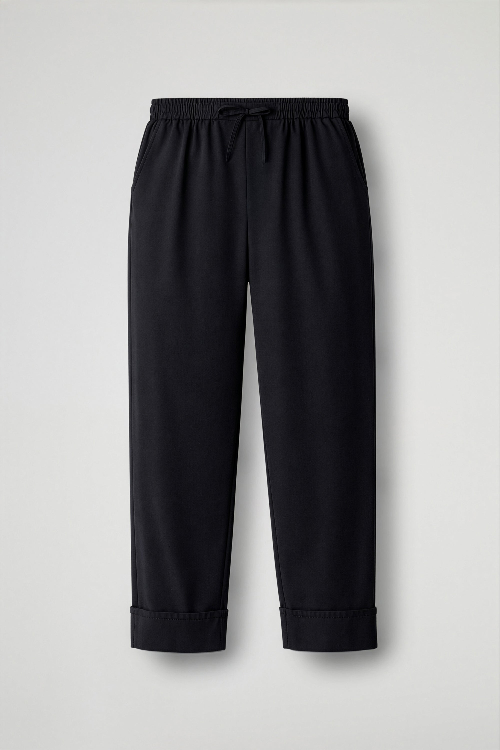 Pantalone dal taglio morbido e confortevole, ideale per un look casual curato. La vita elasticizzata con coulisse regolabile garantisce una vestibilità pratica e adattabile. Modello con tasche laterali e gamba dritta che termina con risvolto al fondo, dettaglio che dona carattere e rende il capo facile da abbinare.
