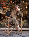 La linea ampia e scivolata dona armonia alla figura e accompagna i movimenti con grazia, mentre la vita elasticizzata assicura massimo comfort e una vestibilità versatile.