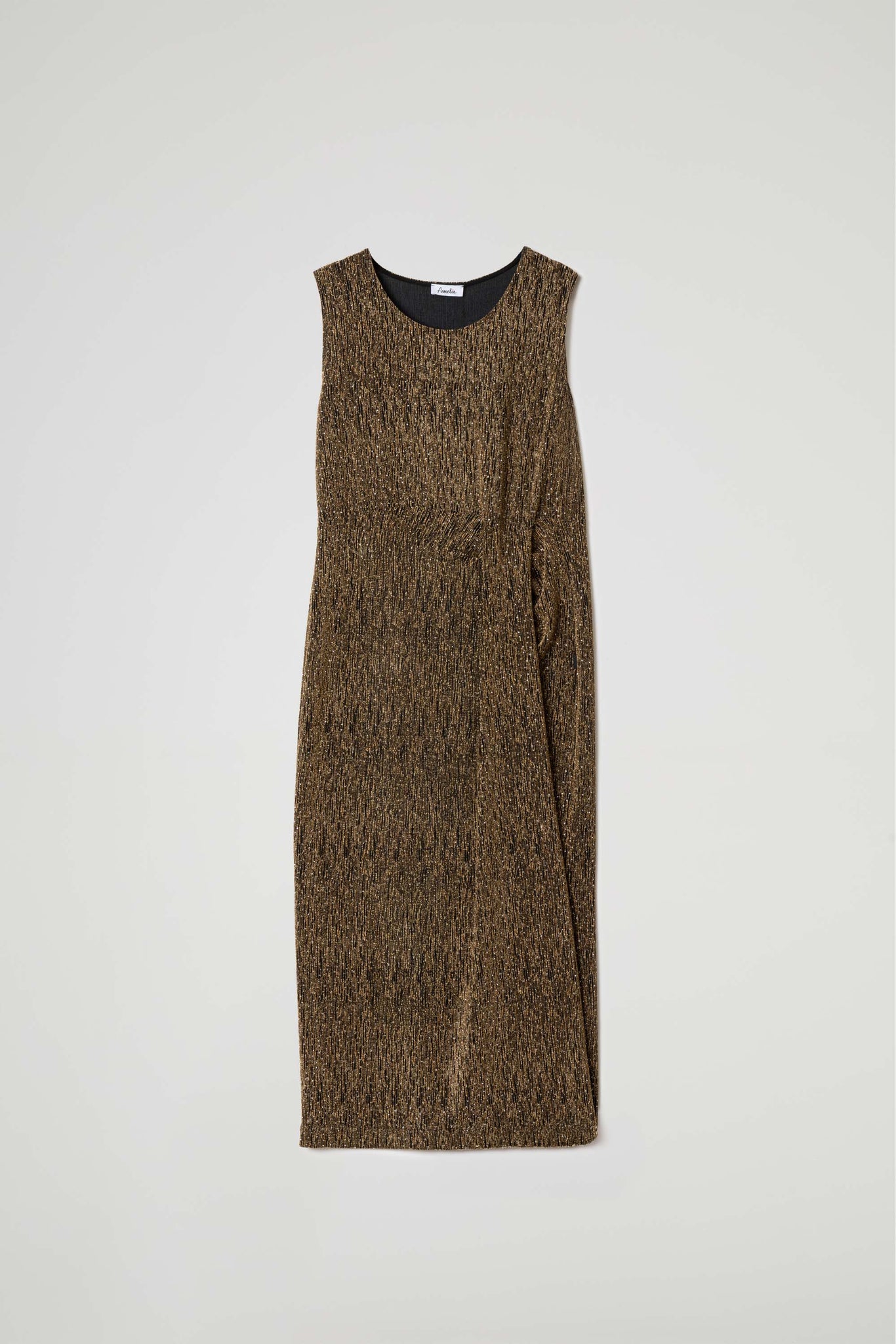 Abito in tessuto lurex , leggero, confortevole e luminoso, è un abito che non ha bisogno di troppi accessori; basta indossarlo per sentirsi immediatamente chic e protagonista della scena.