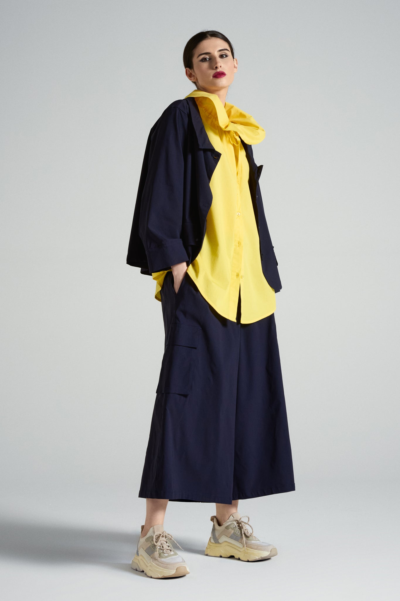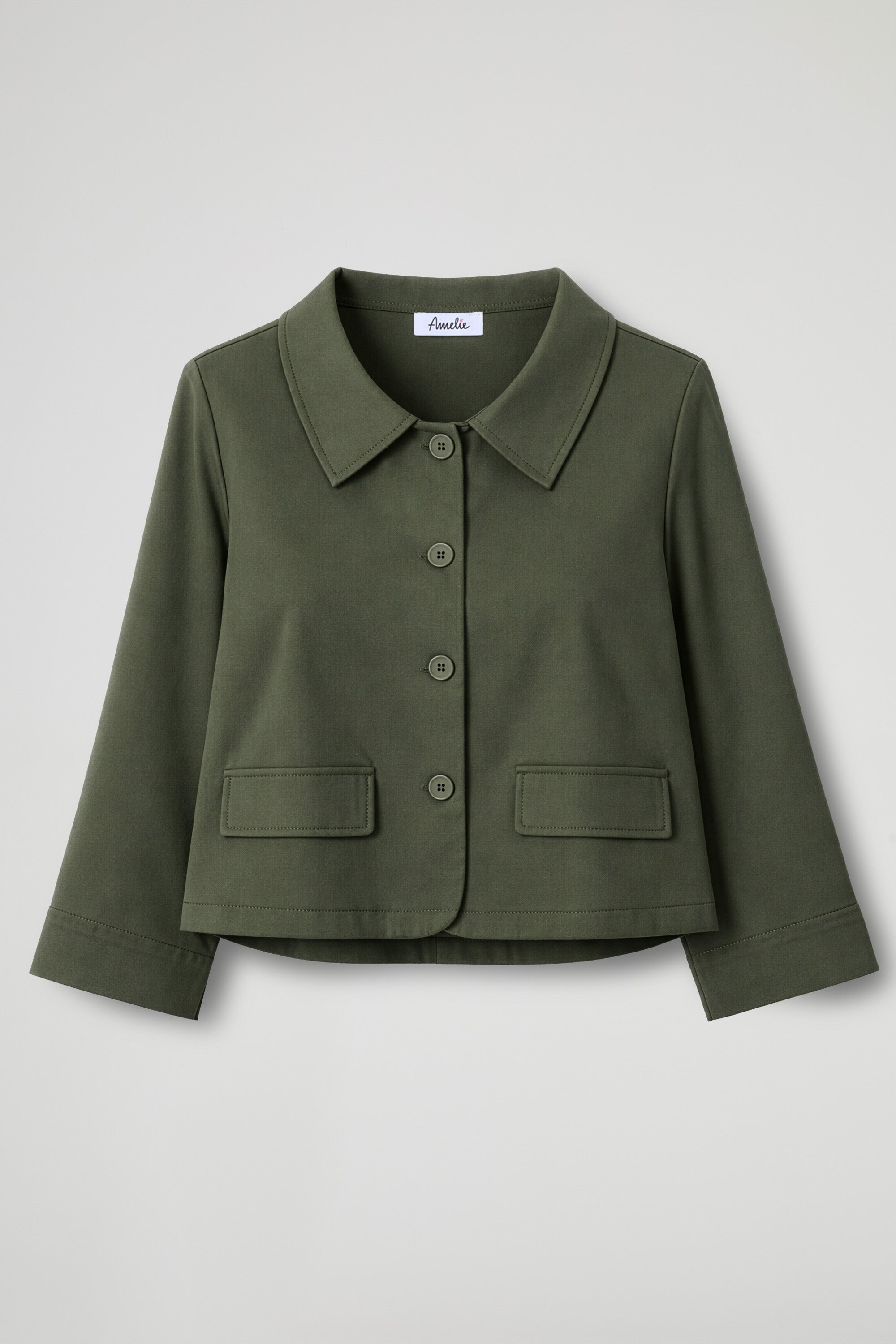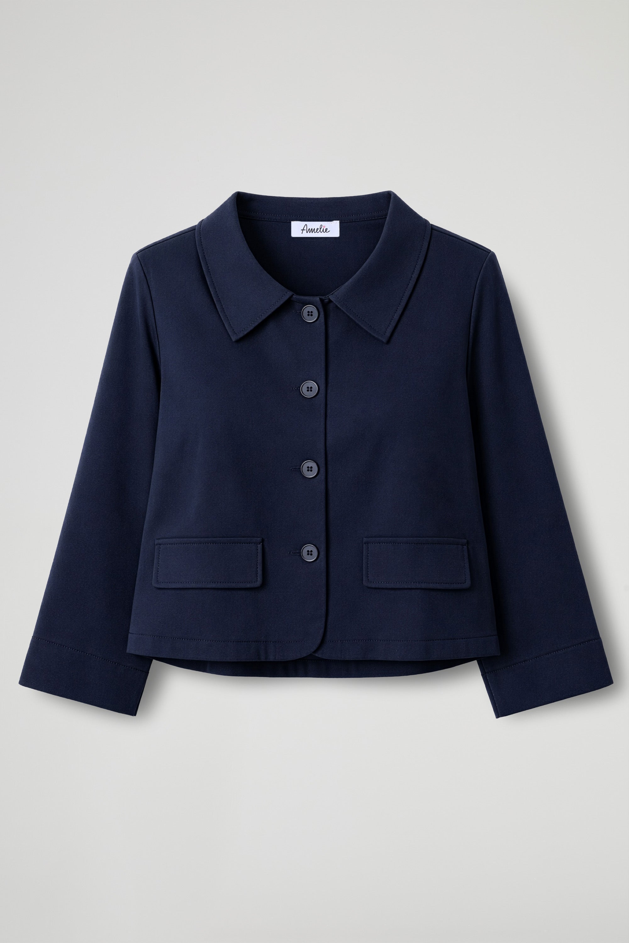 A short jacket with a clean, boxy fit, designed to add structure to your look without weighing you down. The shirt collar and front button closure make it simple yet incredibly versatile: perfect with high-waisted trousers, denim, or dresses, from day to night.