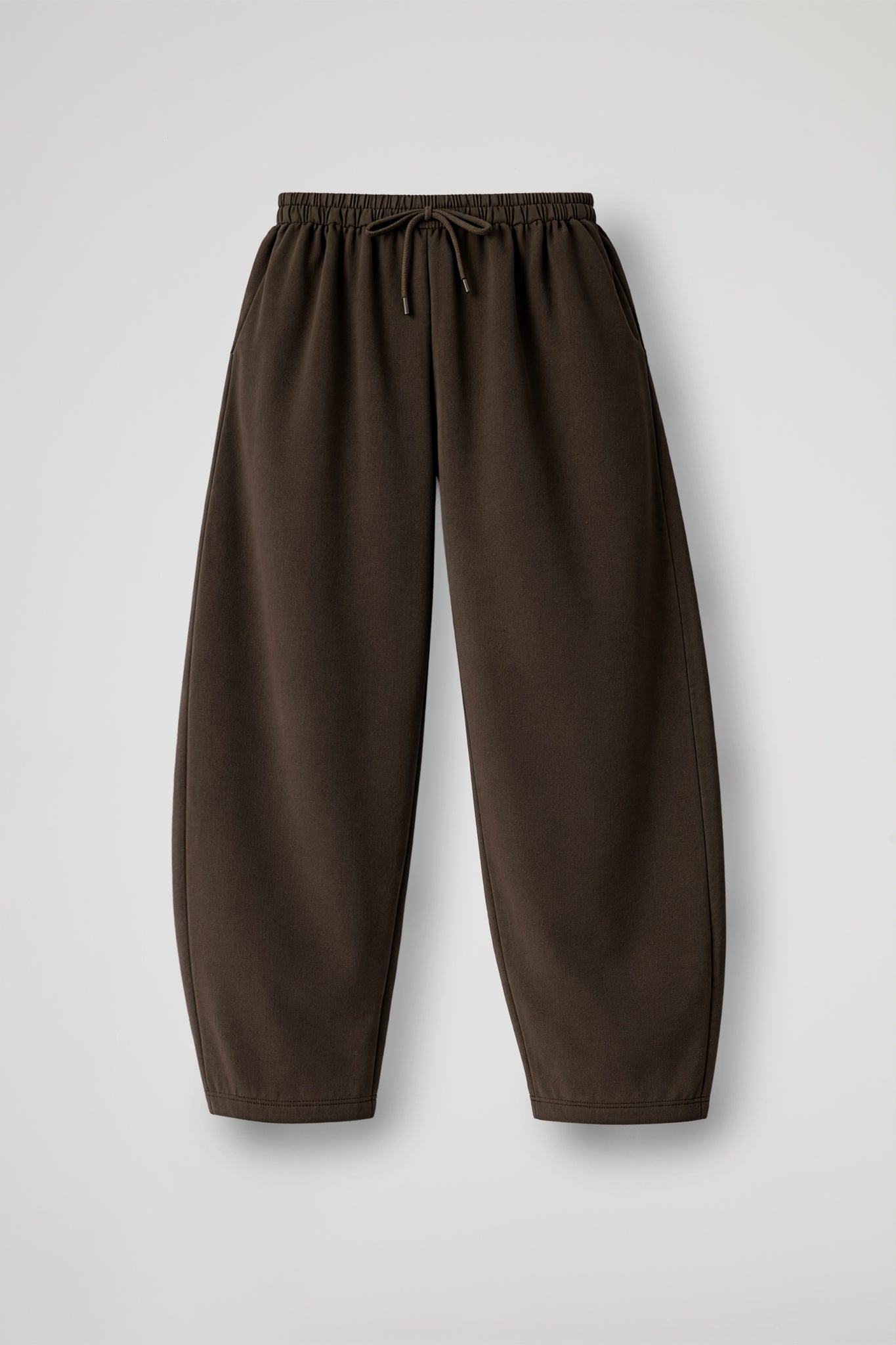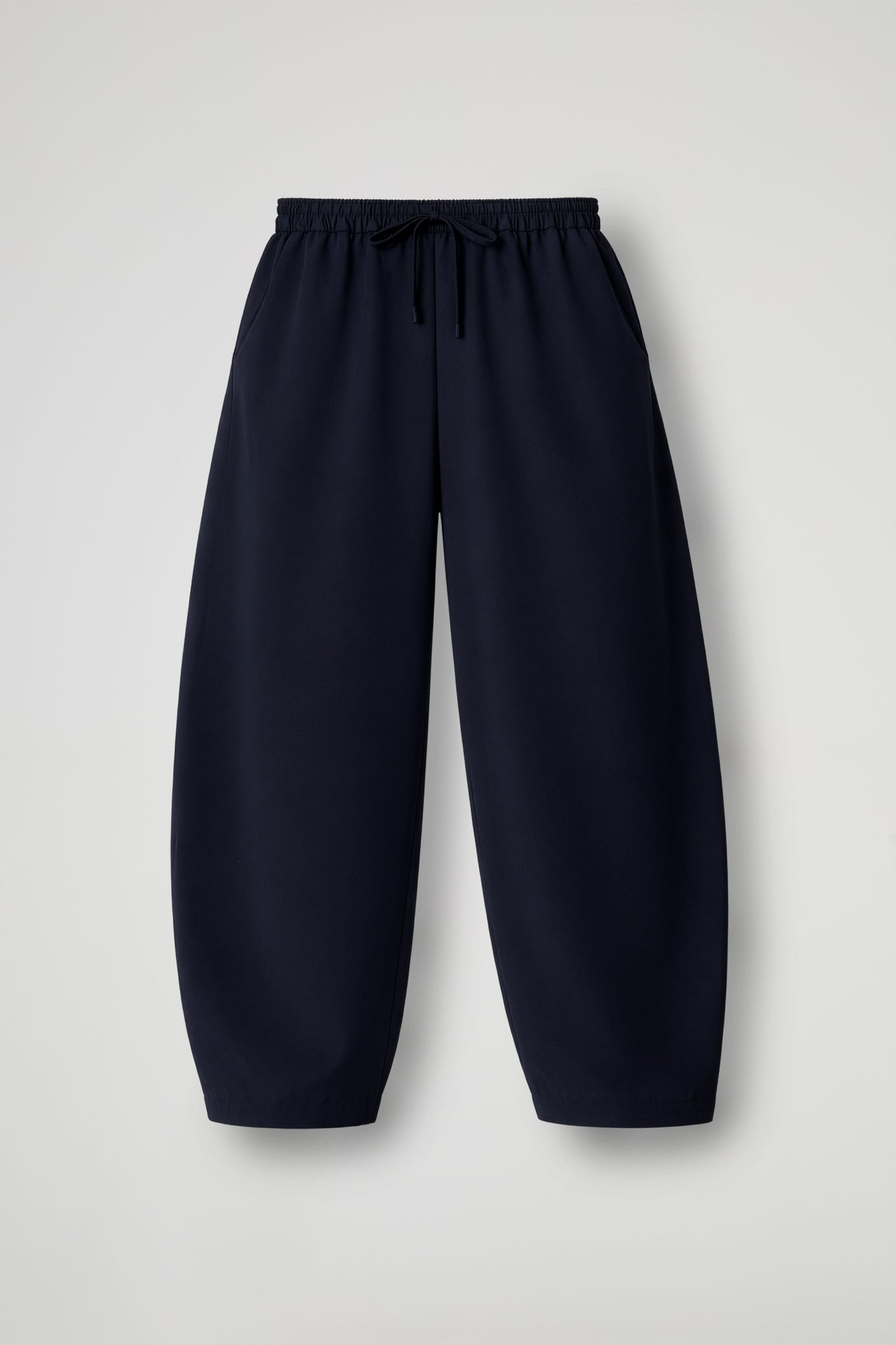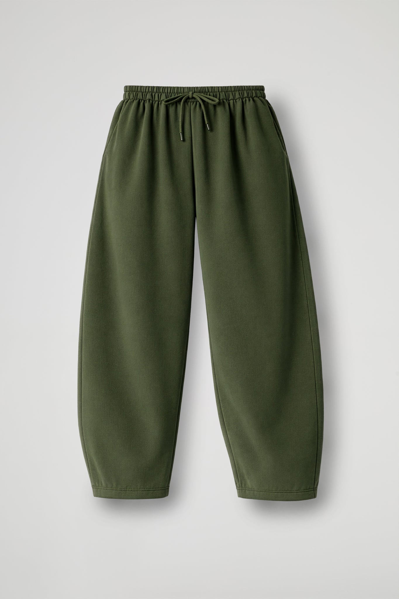 Pantalone jogger dal taglio comodo e rilassato, perfetto per look quotidiani easy-chic. La vita elasticizzata assicura comfort, mentre la coulisse con laccetto regolabile permette di adattare la vestibilità. Tasche a filo, gamba ampia che scende morbida e leggermente affusolata verso il fondo, con orlo rifinito a impuntura.