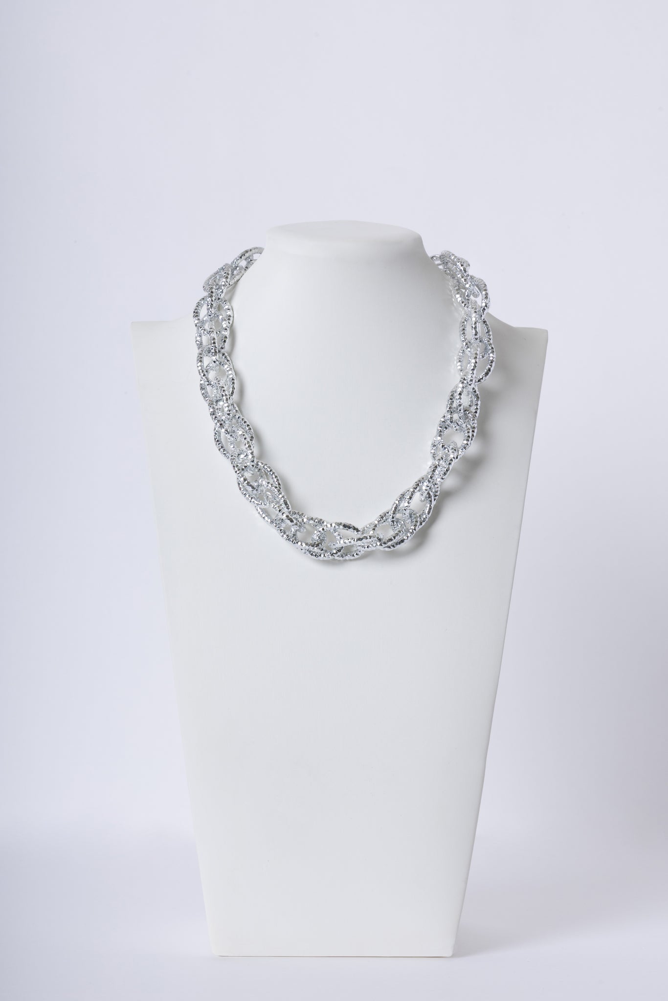 Collana dal design a maglie ovali intrecciate, internamente lavorate con strass luminosi per un effetto super brillante; Un accessorio d'impatto, perfetto per valorizzare anche il look più essenziale, dal giorno alla sera.