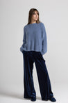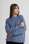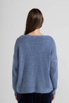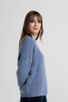 Maglione in filato di alpaca, linea boxy, manica lunga, dettaglio coste su fondo e manica.
