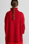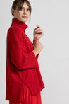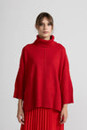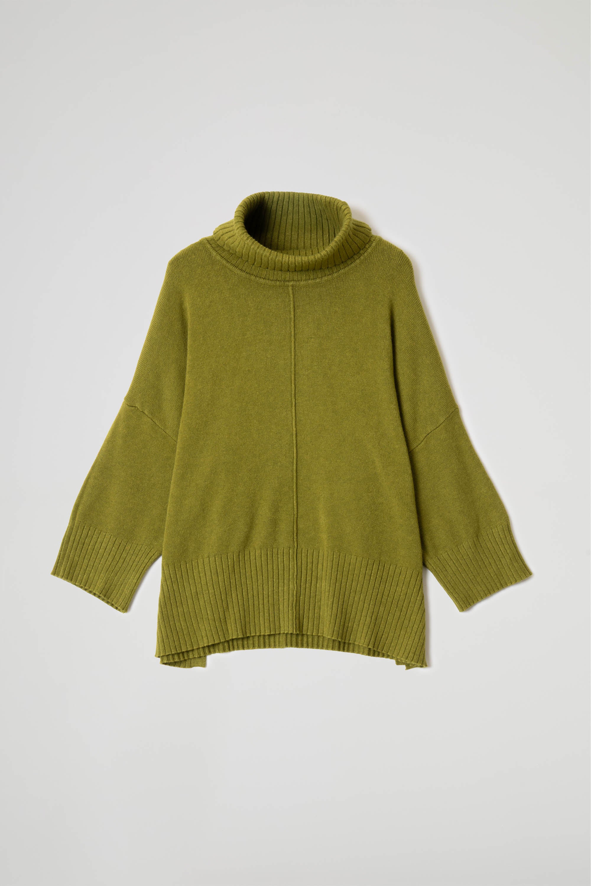 Maglia dolcevita over in morbida maglina di viscosa, ampio collo alto a coste lavorato a maglia elasticizzata, che garantisce calore e comfort, spalla scesa con maniche lunghe e polsini a coste, cucitura decorativa su fronte e retro, fondo asimmetrico arricchito da una lavorazione a costine verticali e piccoli spacchi laterali che donano libertà di movimento e un aspetto contemporaneo. Linea ampia e morbida.