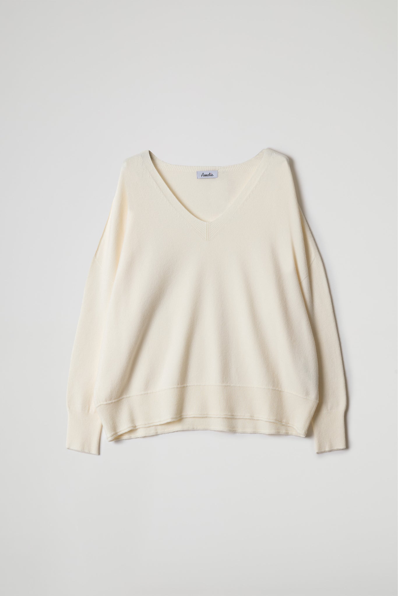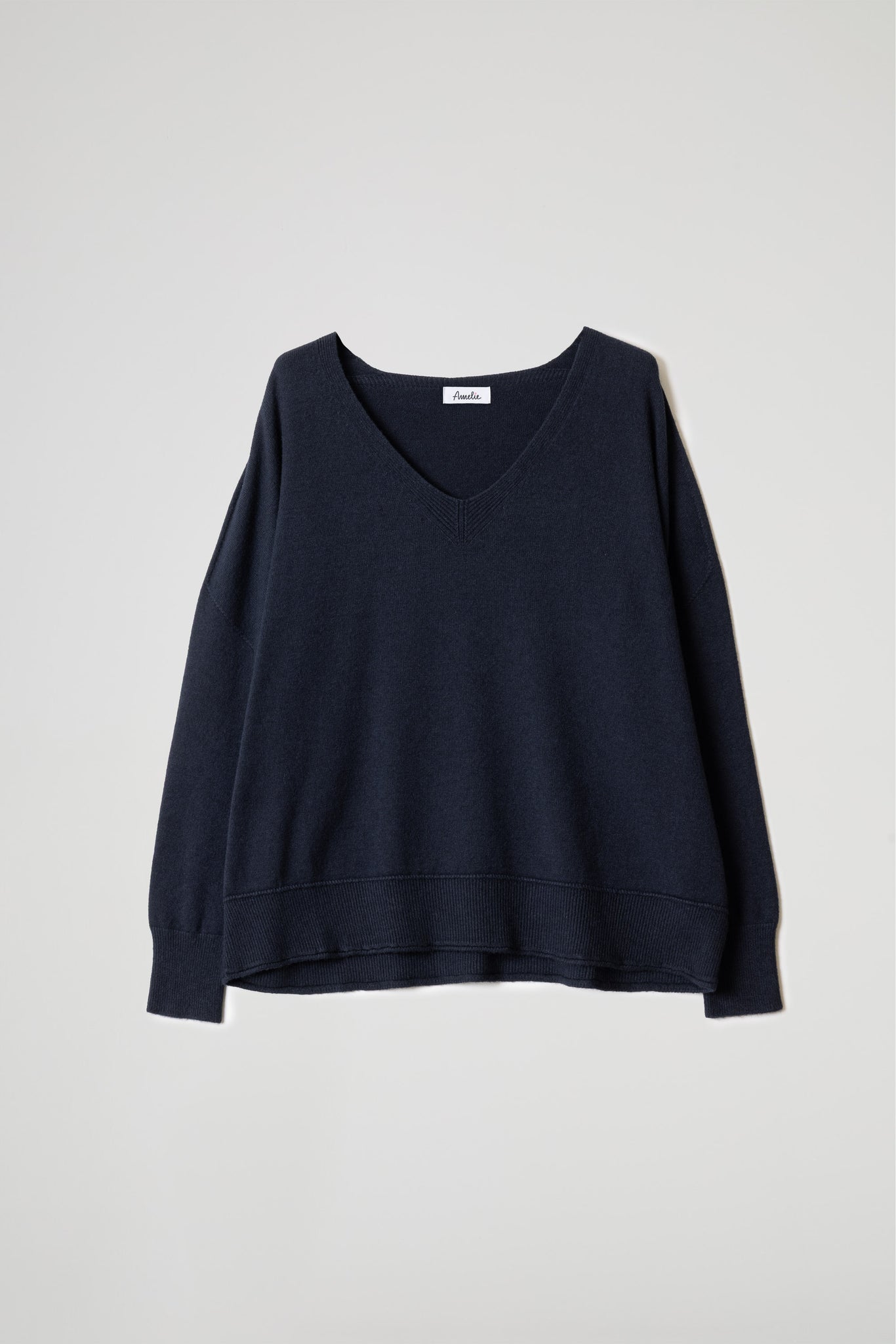 Pullover over asimmetrico in morbida maglina di viscosa, design essenziale e raffinato dal taglio fluido e ampio.