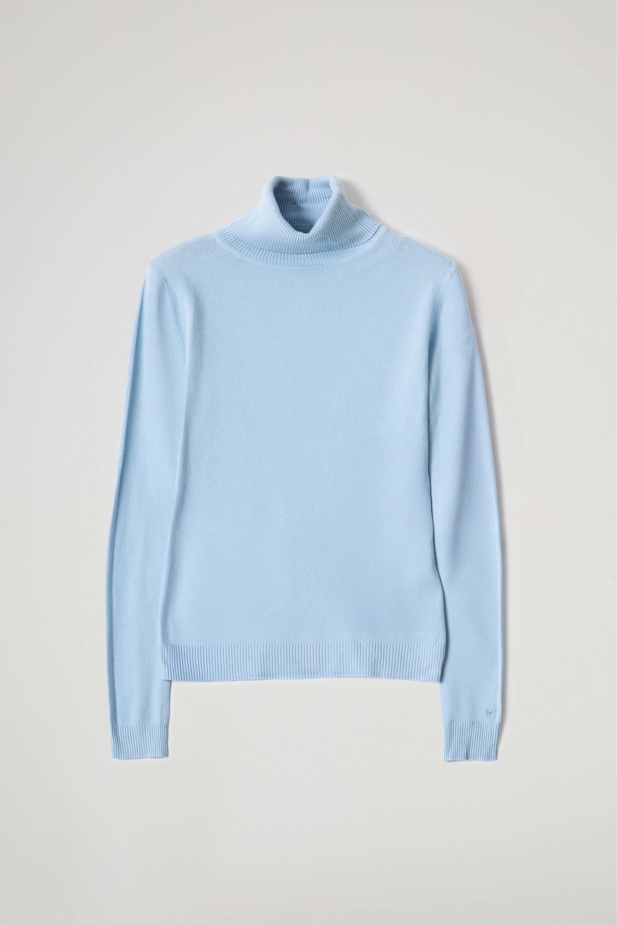 Maglia dolcevita, collo a costine elasticizzato, manica lunga con dettaglio polsino alto a costine, fondo a costine. Linea morbida