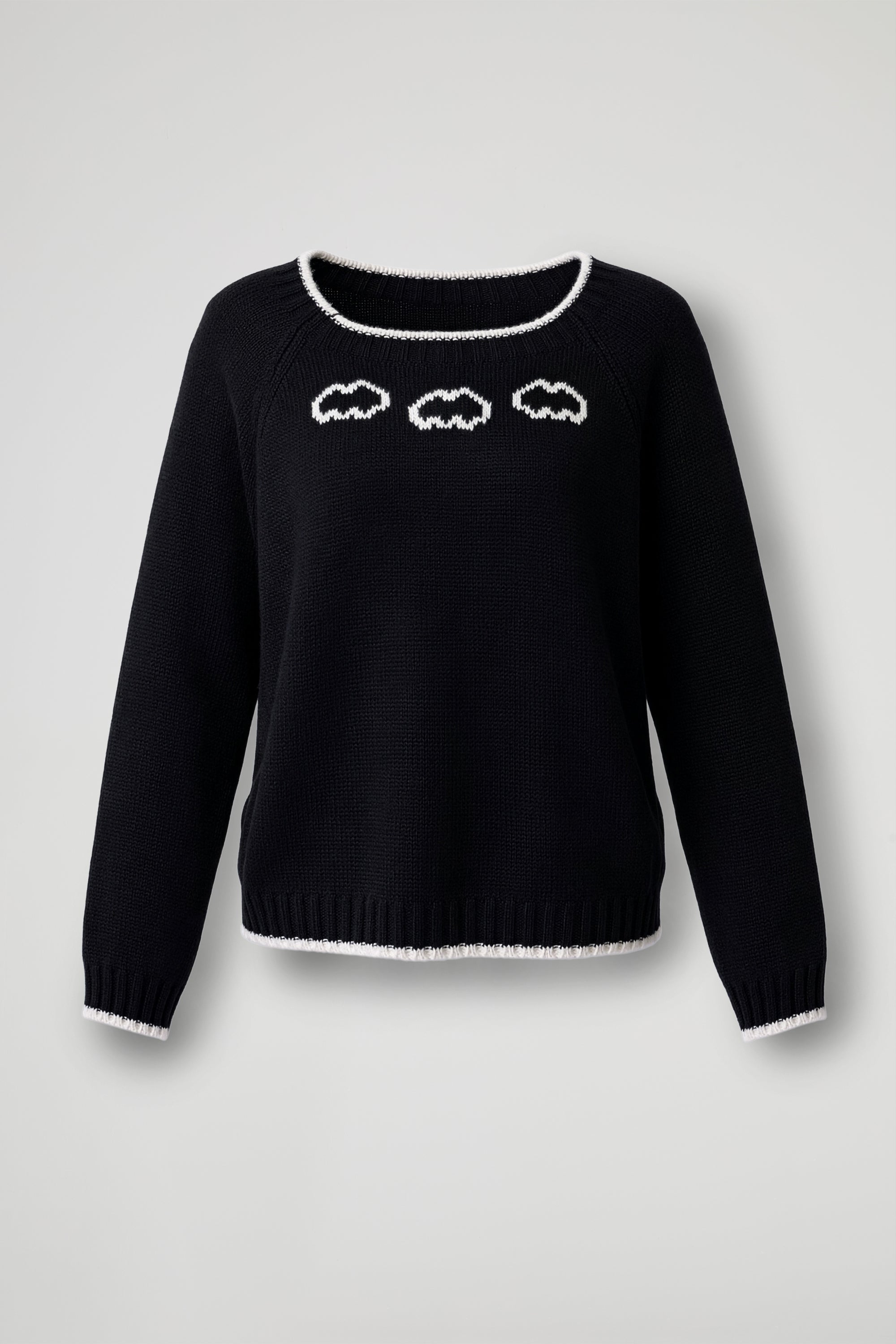 Maglione super morbido dal fit comodo; lo scollo a barchetta mette in risalto il décolleté, mentre le maniche raglan lo rendono perfetto da indossare ogni giorno. Le finiture a contrasto su scollo e fondo aggiungono un tocco cool e rilassato.