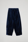 PANTALONE BAGGY IN VELLUTO ELASTICIZZATO, ELASTICO E COULISSE REGOLABILE IN VITA,TASCHE A FILO, TAGLIO REBIATTUO SU FONDO.