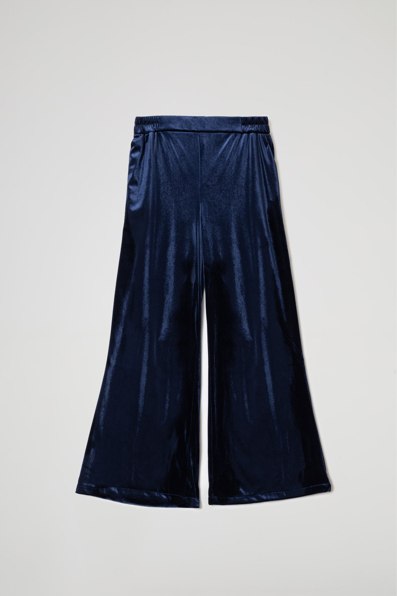 Pantalone a palazzo in velluto elasticizzato morbido e piacevole al tatto, elastico in vita per un comfort ottimale, tasche all' americana. Lina morbida